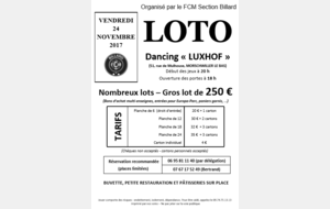 Ce 2ème loto de la saison 2017-2018 sera entièrement organisé par le FCM Section Billard (voir précisions concernant l'organisation générale des lotos ici).