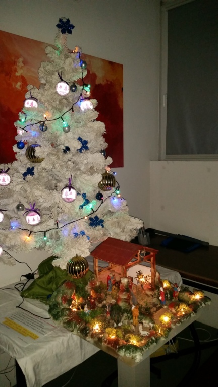 A coté du sapin de noêl apporté par Patrick, il y a maintenant une superbe crêche confectionnée par Raphaêl.